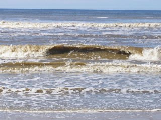 und die Wellen sehen dadurch richtig braun aus. Im Strandcafe machen wirs uns bei einem Cappu in der Sonne gemütlich und genießen den Blick aufs Wasser und das Treiben der Urlauber. Hier ist es schon wesentlich voller als auf Texel.
