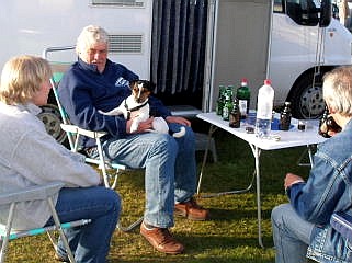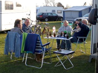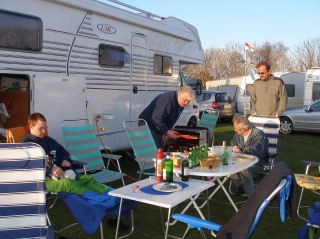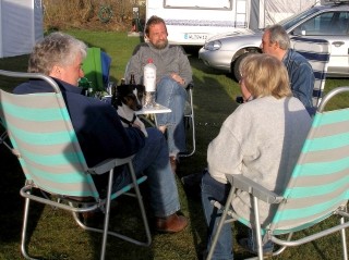 große Camperfamilie und sehen den netten Nachbarn die morgendlichen munteren Aktivitäten