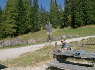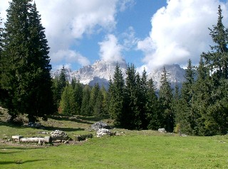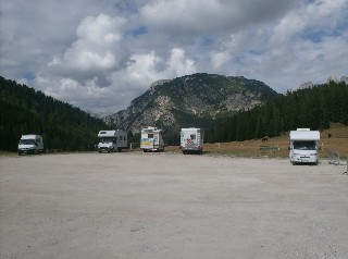 Der Himmel ist leicht bewölkt, unsre Beine etwas schwer, der Kühlschrank fast leer, und das Bier ist all - also satteln wir das Womo und fahren erst mal nach Silian zum Hofer und an die Tanke. Danach steuern wir Richtung Misurina,