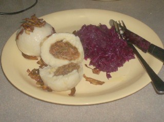 Zum Abendessen gibts Grammelknödel mit Röstzwiebeln und Rotkraut, und hinterher lassen wir mit einen Willi bzw. Sambuca diesen Tag ausklingen.