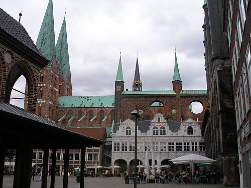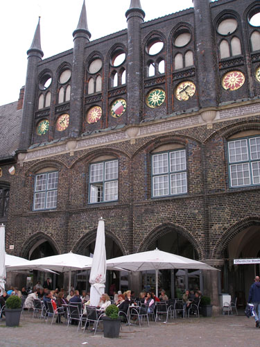 Lübeck ist eine herrliche Stadt, und ich kann mich an den Bürgerhäusern und der Backsteingotik garnicht satt sehen. Also müssen wir zu Fuß nochmal einen Großteil der Strecke ablaufen. Eine Straße ist schöner als die andere.