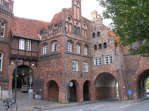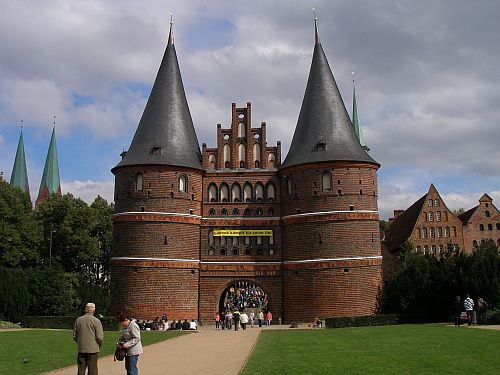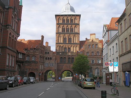 Direkt gegenüber geht der Bus ab, und wir fahren bis zum Holstentor.
