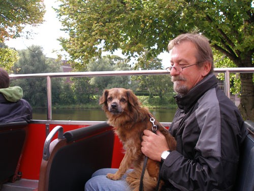 Bruno freuts, denn er darf bei Peter auf die Knie, damit er auch was sieht. Schiefe Türme gibts hier jede Menge. Dies ist nur einer davon.