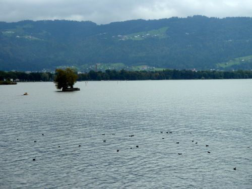 Aber erst mal einen Blick auf den Bodensee. Die richtigen Berge haben sich leider versteckt.