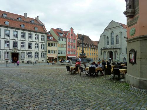 Ähnlich wie an der Silberhochzeit sind wir von Tauben umringt, aber heute gibts keinen Hamburger aufm Markusplatz, sondern Currywurst aufm Marktplatz.