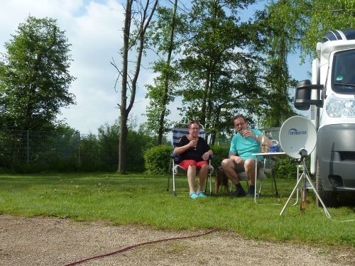 Und weils gerade trocken ist, drehen wir eine Runde um den Campingplatz und gehen am Schwanenteich zurück.