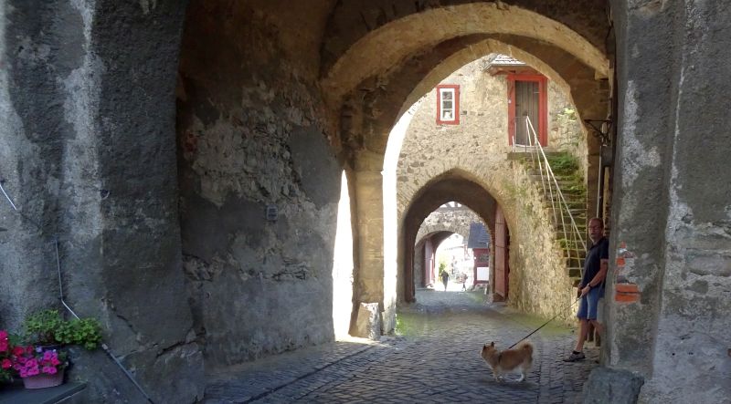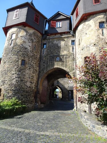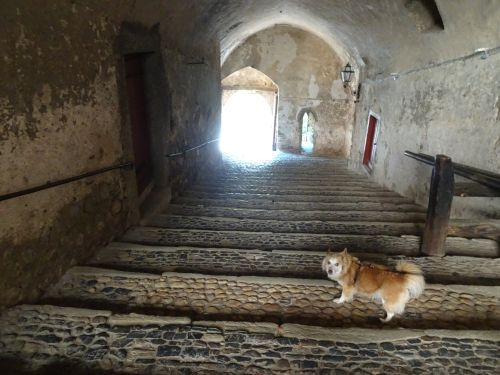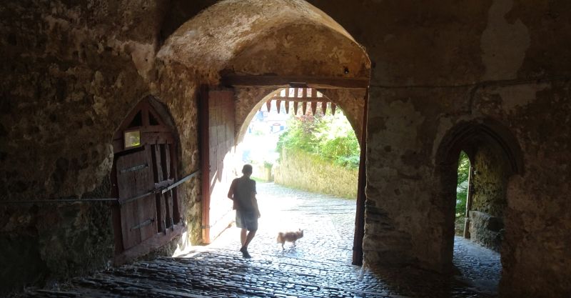 Und nach dem Rundgang durchs Städtchen müssen wir wieder hoch und durch die Pforten und den Schlosshof zurück.