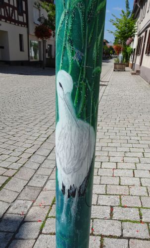 Gleich am Ortseingang wohnt der Klapperstorch auf einem Laternenmast. Hier ist das Geburtshaus. Also so gemütlich, wie das ganze Städtchen, kommen hier auch die Bobbelchen auf die Welt.