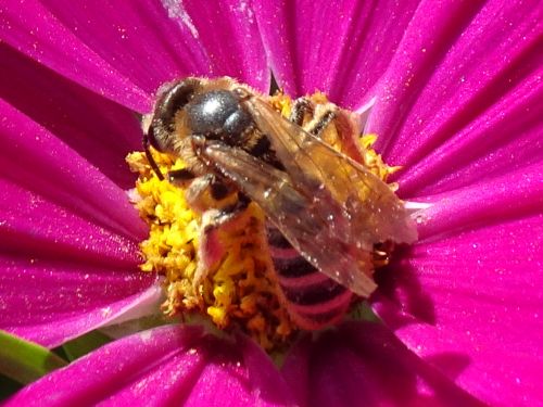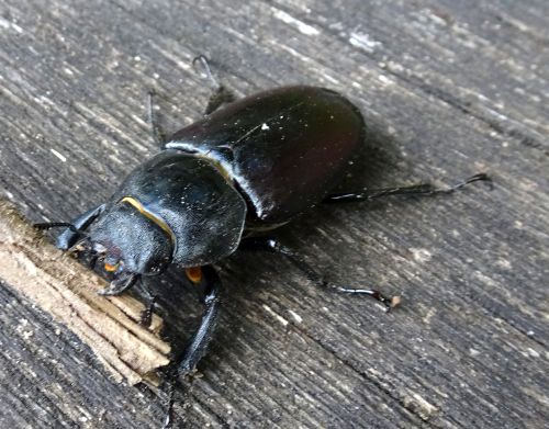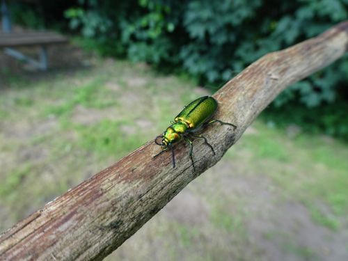 Der grün-goldene Scheinbock und die weibliche Verwandte des Hirschkäfers sind wohl vor der Betriebsamkeit auf dem Platz geflüchtet.