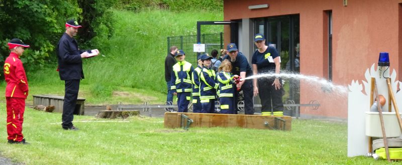 Die Jugendwehren aus dem ganzen Landkreis messen ihr Können an verschiedenen Stationen und die Kinder sind mit Eifer bei der Sache.
