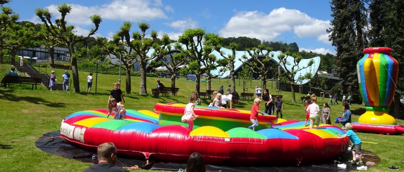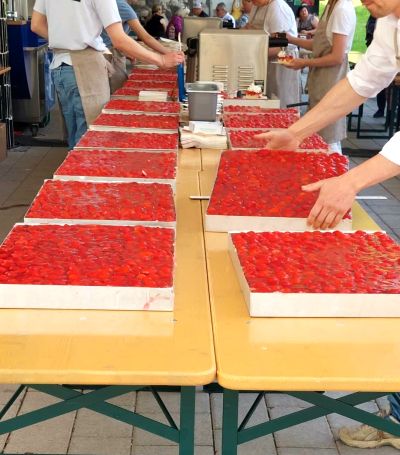 Der 200 m lange Erdbeerkuchen entpuppt sich als Finte. Selbst in schmale Stücke geschnitten sind das niemals 200 Meter.