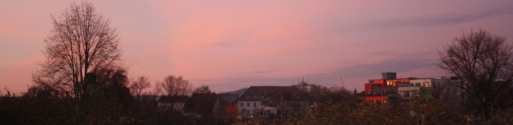 Nach einem zartrosa Sonnenaufgang geh ich mal mit Carl über die tiefgefrorene Müllerwiese.