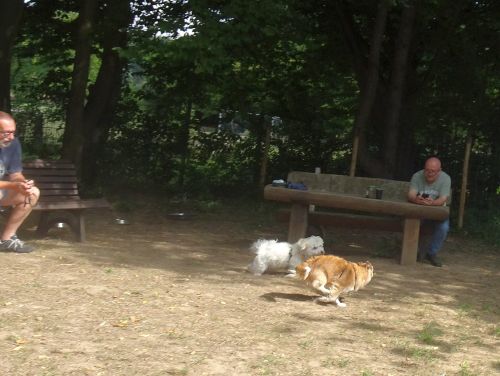 Carl findet einen Freund und tobt im Hundefreilauf, einem abgezäunten Teil des früheren Freibades.