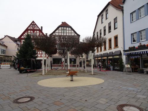 Übern neu gestalteten Marktplatz, wo bereits der Weihnachtsbaum aufgebaut wird, gehen wir zurück.
