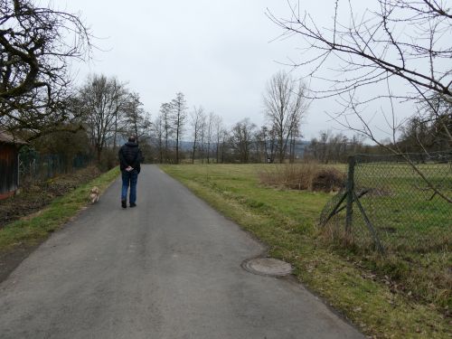 Spaziergang am Bach entlang. Und gerade kommt einer vom Frühstück auf der Wiese
