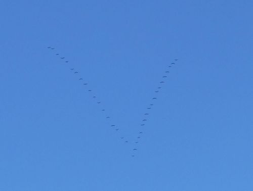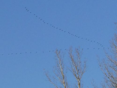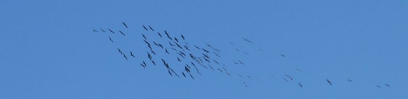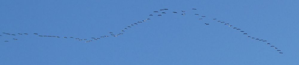 Von wegen fliegen: den ganzen Nachmittag fliegen die Kraniche schon drüber.