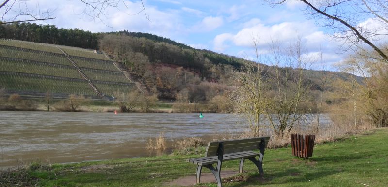 Wir machen trotzdem unsern Spaziergang. Der Main ist wohl gerade wieder in sein Bett zurück gerutscht, denn der Uferweg ist noch nass und das mitgebrachte Gestrüpp hat er auf den Wiesen abgeladen und im Gebüsch hängenlassen.