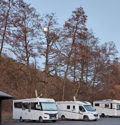 Heute sind 5 Womos weggefahren, und nun stehen hier nur noch die, die immer hier stehen. Man kennt sich.