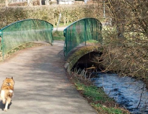Und dann gehts runter auf den Weg am Bach und Carl tut, was er hier immer tut.