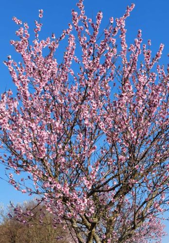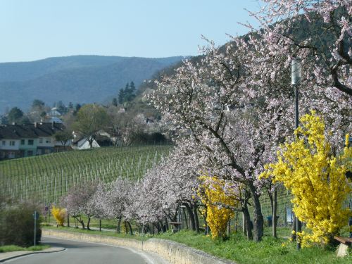 Die Mandelmeile hier ist gemütlich, keine Buden und kein Spektakel, während sich in Gimmeldingen und Edenkoben die Mandelblüte zur Völkerwanderung mit Weinfest entwickelt hat.