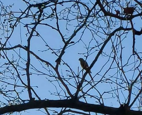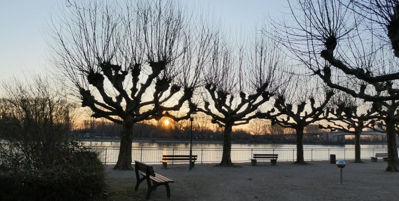 Über uns in den Bäumen nerven die Halsbandsittiche, Hagen wendet sein Gesicht der Sonne zu,