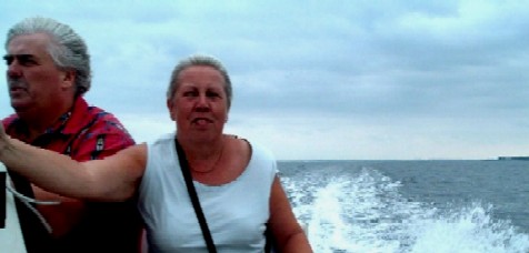 Bisschen mulmig wars mir schon, denn 60 PS sind ne Menge Zeugs und beim Beschleunigen steigt das Boot vorn ganz schön hoch aus dem Wasser. Gottseidank gibts genügend Festklammermöglichkeiten und dann machts richtig Spaß und Damp ist nur noch ganz klein und weit weg. Um mich ein wenig aus der Fassung zu bringen, fährt Günter gekonnt noch ein paar scharfe Kurven und nen Kreis, und die zwei Männer haben ihren Spaß daran, wie ich mich festklammere. Aber ich hab ja inzwischen kapiert, dass nix passiert und es war eine tolle Fahrt - schöner als Motorradfahren.