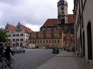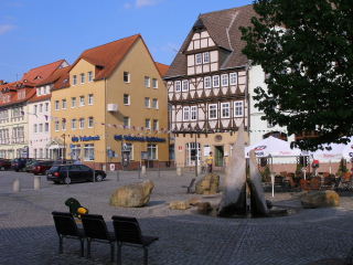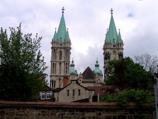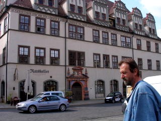 Der Stellplatz in Naumburg liegt am Ende des Altstadtparkplatzes, und wir haben den vorletzten der insgesamt 6 Stromanschlüsse erwischt. Nun gehts in die Stadt. Nette und schön renovierte Altstadt.