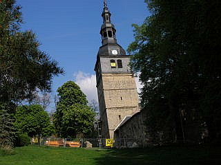 Und hinter dem Kurpark finden wir endlich den schiefsten Kirchturm Deutschlands,