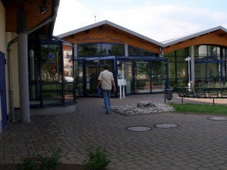 Lieber geb ich die Flocken für nen kurzen Blick ins Internet (leichte Entzugserscheinung hab ich schon) und eine Cola aus, und Peter trinkt nen Eiskaffee und nimmt ein Stück Kirschkuchen im Kanzleicafe. Insgesamt haben wir 6,20 € bezahlt, also weniger als der Kreuzworträtsel-Uta-Besuch gekostet hätte. Und dann gehen wir auf den Stellplatz zurück,