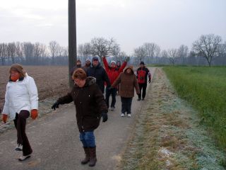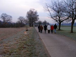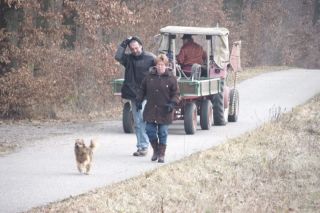 Heut ists bewölkt und Eisregen ist angesagt. Nach dem Frühstück - also kurz vor 12:00 - gehts los zum gemeinsamen Spaziergang: