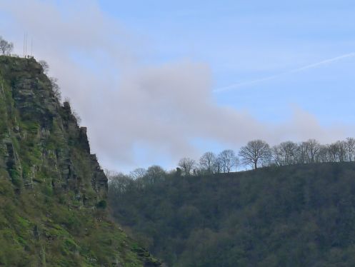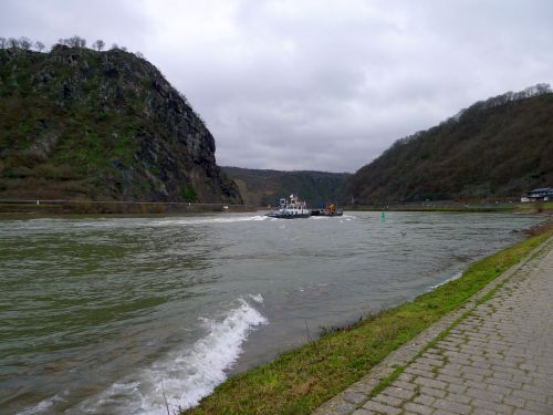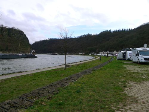 Viel zu schreiben gibts ansonsten nicht. Das Hochwasser ist zurückgegangen und wir genießen das einigermaßen erträgliche "Aprilwetter". Hinter uns kommt sogar blauer Himmel raus, und oben auf dem Loreleyfelsen sieht man trotz Wind einige mutige Menschen stehen.