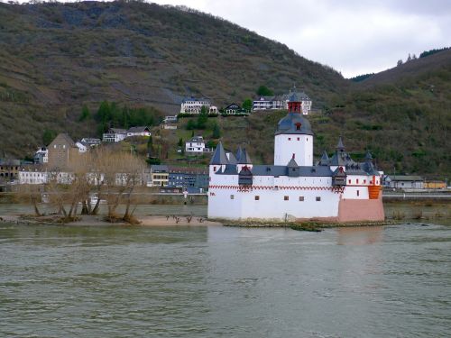 Unterwegs machen wir kurz Pause gegenüber von Kaub und ich fotoknipse die Burg Pfalzgrafenstein, die einst eine Zollstelle war, glaub ich. Im Sommer ist der Parkplatz hier wegen der Fähre immer belegt, aber heute hab ich Glück und wir können anhalten.