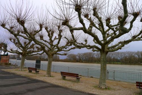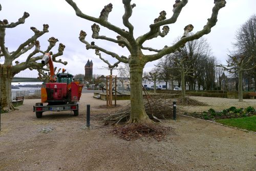 Die Platanen bekommen gerade ihren Sommerschnitt verpasst, die rechten sind noch strubbelig und kommen nach der Mittagspause dran,