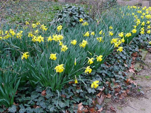 dann freuen wir uns über die Frühlingsboten im Garten nebenan.