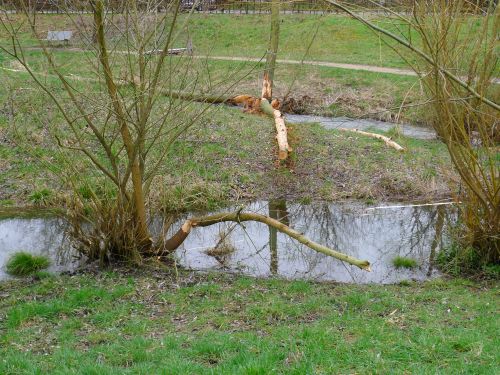 Aber für einen Staudamm wirds nicht reichen, denn der Bach führt wieder ordentlich viel Wasser und lässt sich so leicht nicht aufhalten. Außerdem wurden schon viele Stämme weggeräumt und so der Bau verhindert. Keine Ahnung, wo der arme Biber nun neuen Baugrund findet. Gemein ists schon.