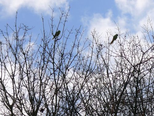 Wie immer begleiten uns die grünen kreischenden Halsbandsittiche.