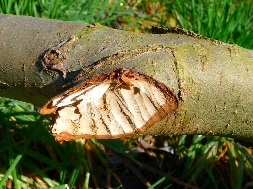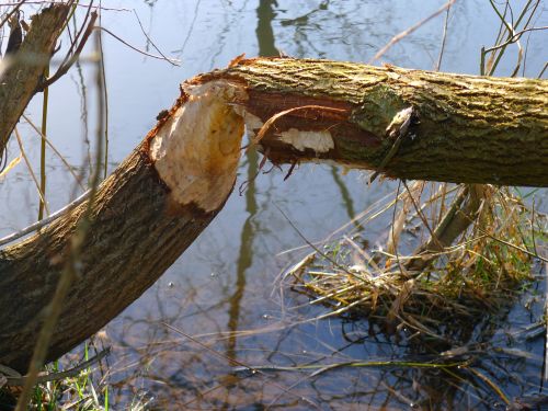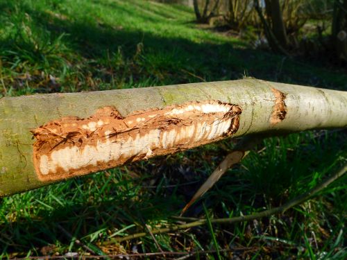 Hier sieht man wunderschön, wie der Nager an den Stämmen schabt.