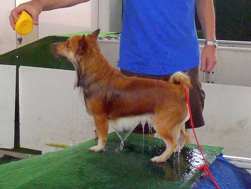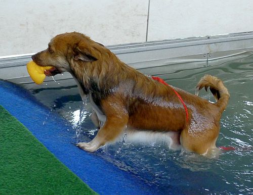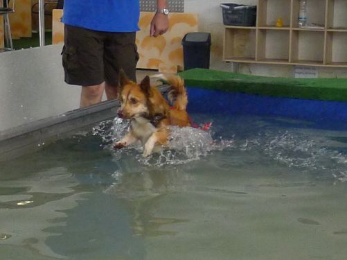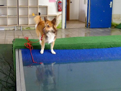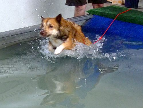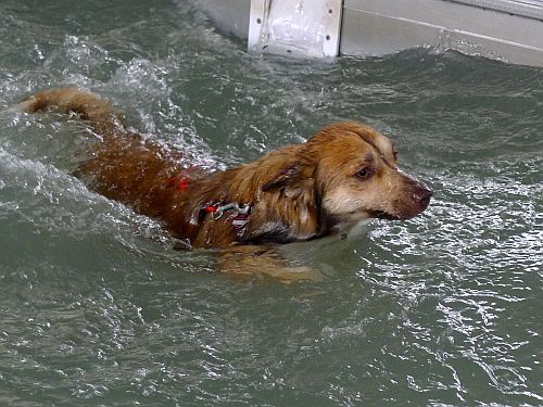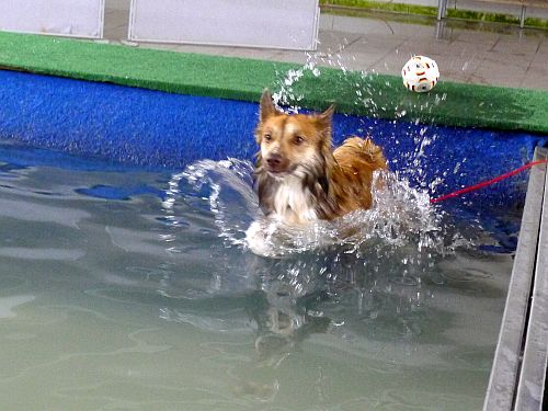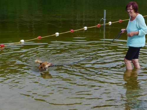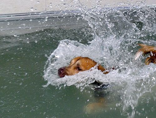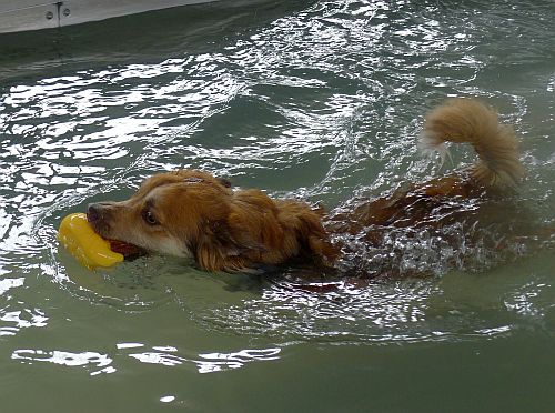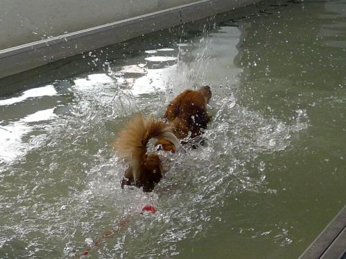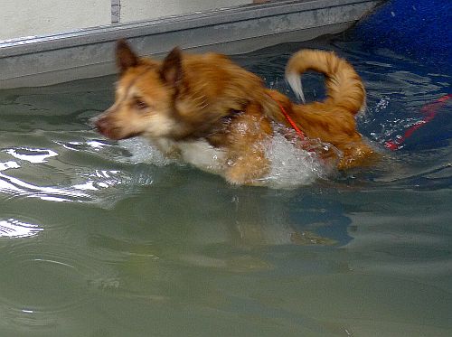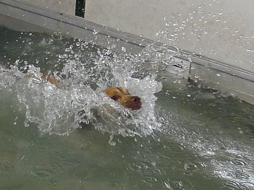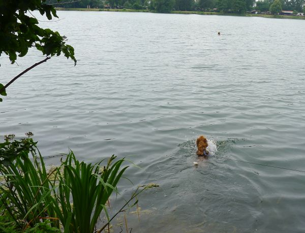 Carl hat sich inzwischen zu einer richtigen Wasserratte entwickelt und springt auch ohne Stöckchenwerfen einfach aus Spaß an der Freud ins Wasser.