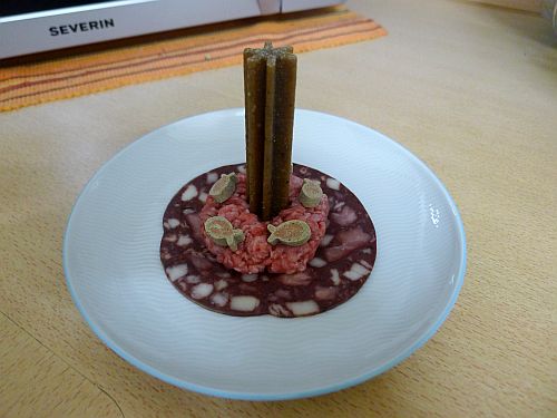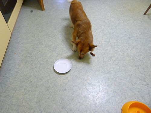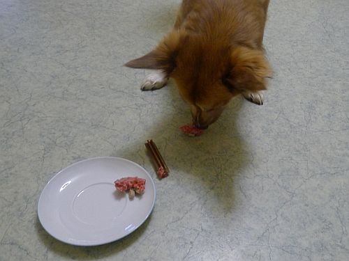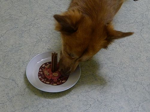 Binnen 2 Sekunden war die Geburtstagstorte verputzt und er schleppte die "Kerze" ins Körbchen, um sie in Ruhe reinzukauen.