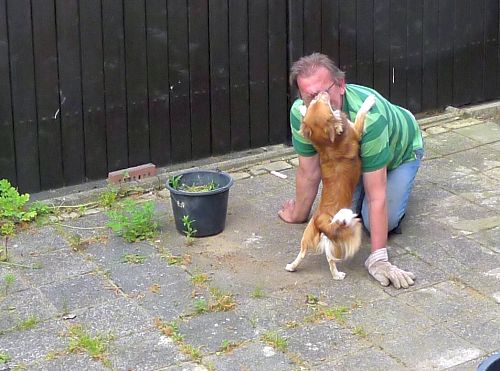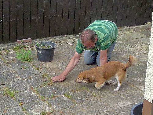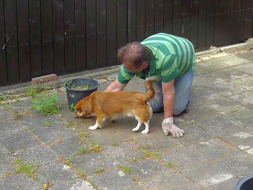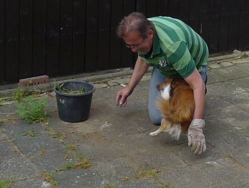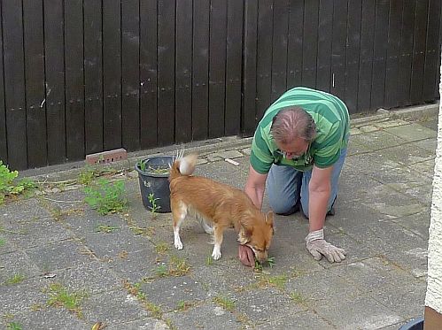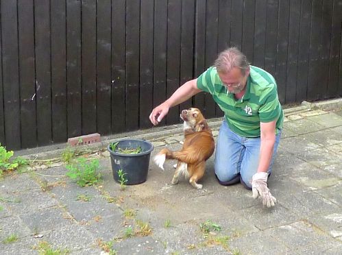 Carl hilft Unkraut jäten