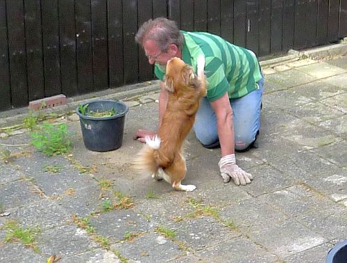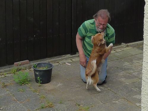 Peter musste ihn mit Gewalt mit der Leine zurückziehen.