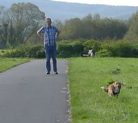 Nun muss er noch lernen zurückzukommen, wenn er grad beschäftigt ist, denn alle Kommandos funktionieren nur, wenn er grad nix wichtigeres zu tun hat. Es sei denn, er weiß, dass ich Leckerchen in der Hand habe. Dann isser fix.