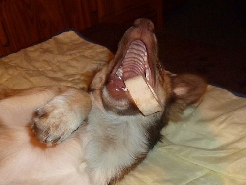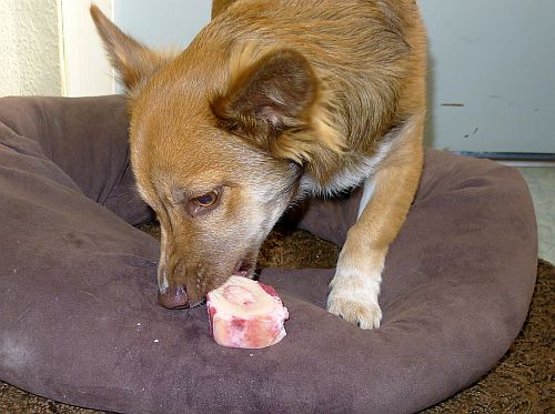 Anschließend wurde der Knochen stundenlang bearbeitet, verbuddelt, ausgegraben und gekaut.