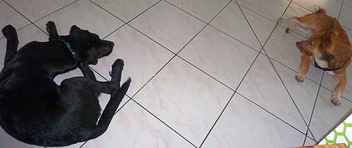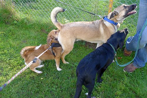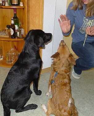 Alles ok, und Sitz, Bleib und Platz klappt sogar gemeinsam. Brave Hunde.