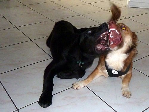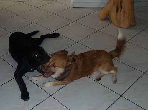 Nachdem Carl letzte Woche einen auf Macho gemacht hat, haben wir heute bei Julia zuhause den Test gemacht, und die beiden Kontrahenten nach der gemeinsamen Welpenstunde dort zusammengebracht.