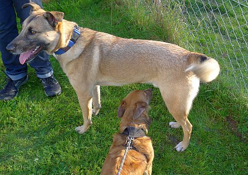 Heute hat Carl im Anschluss an die Welpenstunde Mali-Mix Max kennengelernt. Er wohnt ja mit Paul zusammen und wahrscheinlich werden sich die beiden dort auch mal über den Weg laufen, und wir sind froh, dass die beiden sich nicht unsympathisch sind.