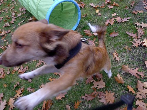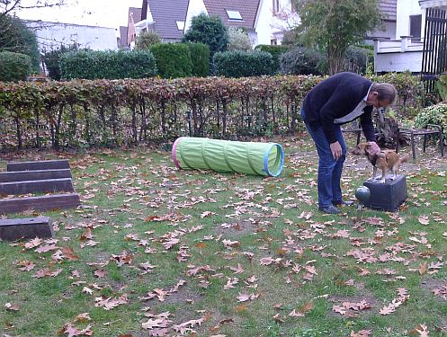 Nachdem Carl vorgestern in der Welpenstunde den Spielparcour so begeistert gelaufen ist, haben wir heute mal geübt und abends durfte er sein Können stolz dem Herrchen vorführen. Die Bilder sind leider wieder unscharf, weil unser Wusel entweder zu schnell oder die Kamera bei einsetzender Dunkelheit zu langsam war. Egal, zur Erinnerung reichts.