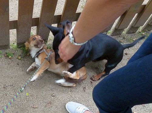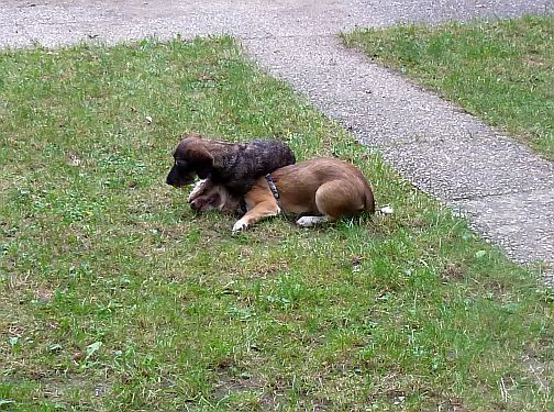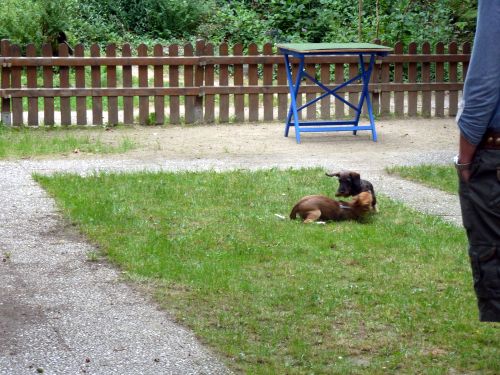 Bei dieser Erfahrung in der Hundeschule wollen wirs aber auch belassen, denn Spiel wäre uns eigentlich wichtiger, als die Erziehung zum Ausstellungshund. Es gibt ja nur diesen einen Dackel als Spielkameraden, und der ist jetzt 6 Monate alt, also geht nun in die Ausbildung, und Carl wäre alleine.