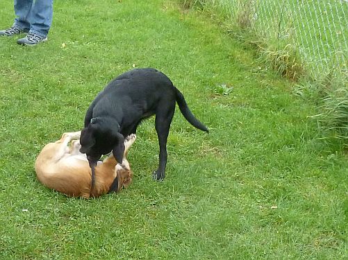 Da der Labi-Mix unsres Sohnes nun auch in die Hundeschule geht, und Carl beim letzten Besuch hier bei uns daheim den Dicken gemacht hat, gehn wir nun auch dort hin, denn sonst werden die Familienfeiern über Jahre hinaus stressig.