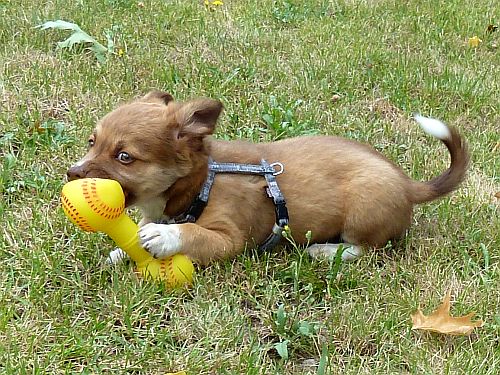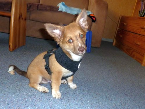 Heute ist sein Soft-Geschirr angekommen. Jetzt ziept nix mehr.